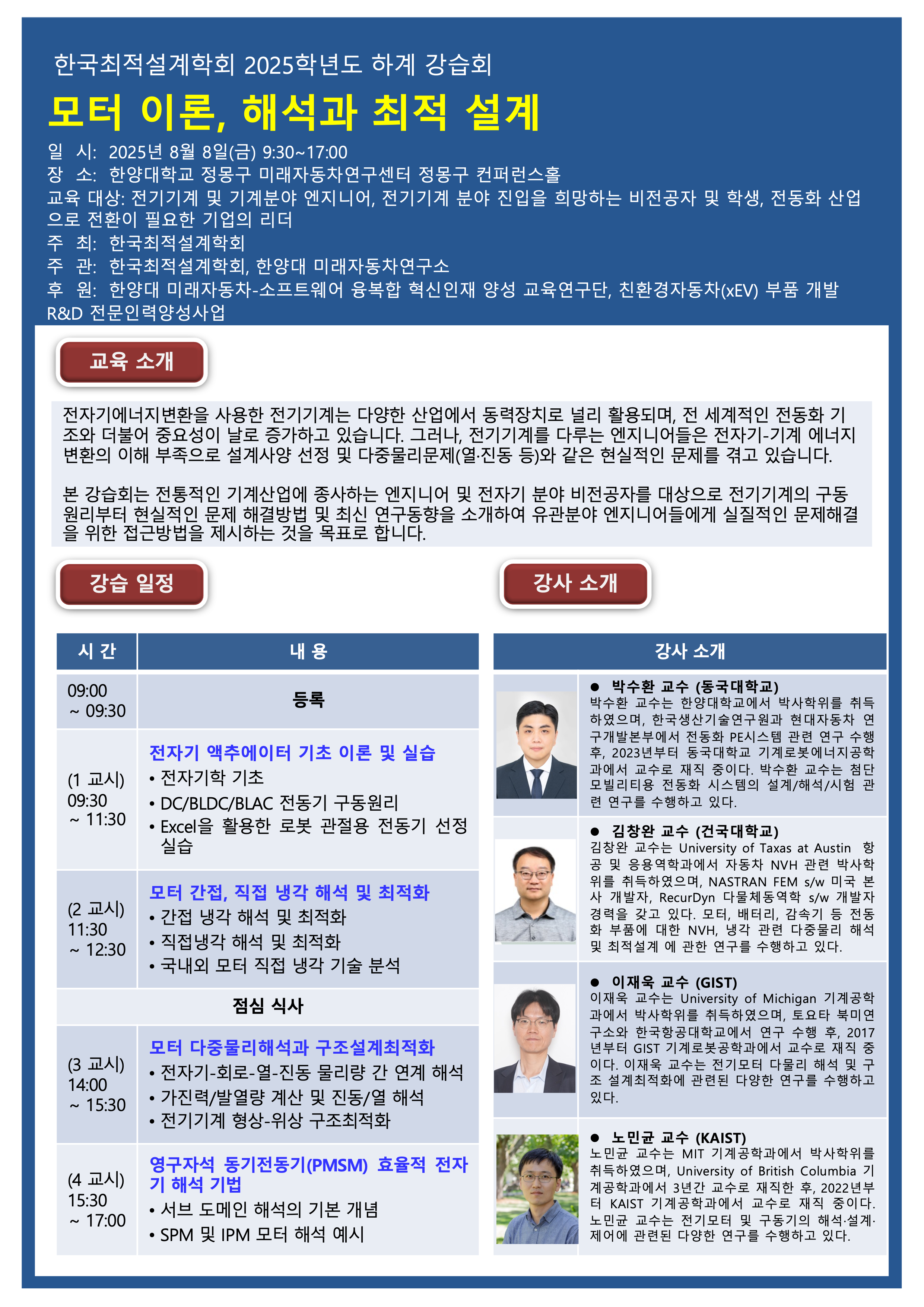 한국최적설계학회 2025학년도 하계 강습회 조직위원장 윤길호